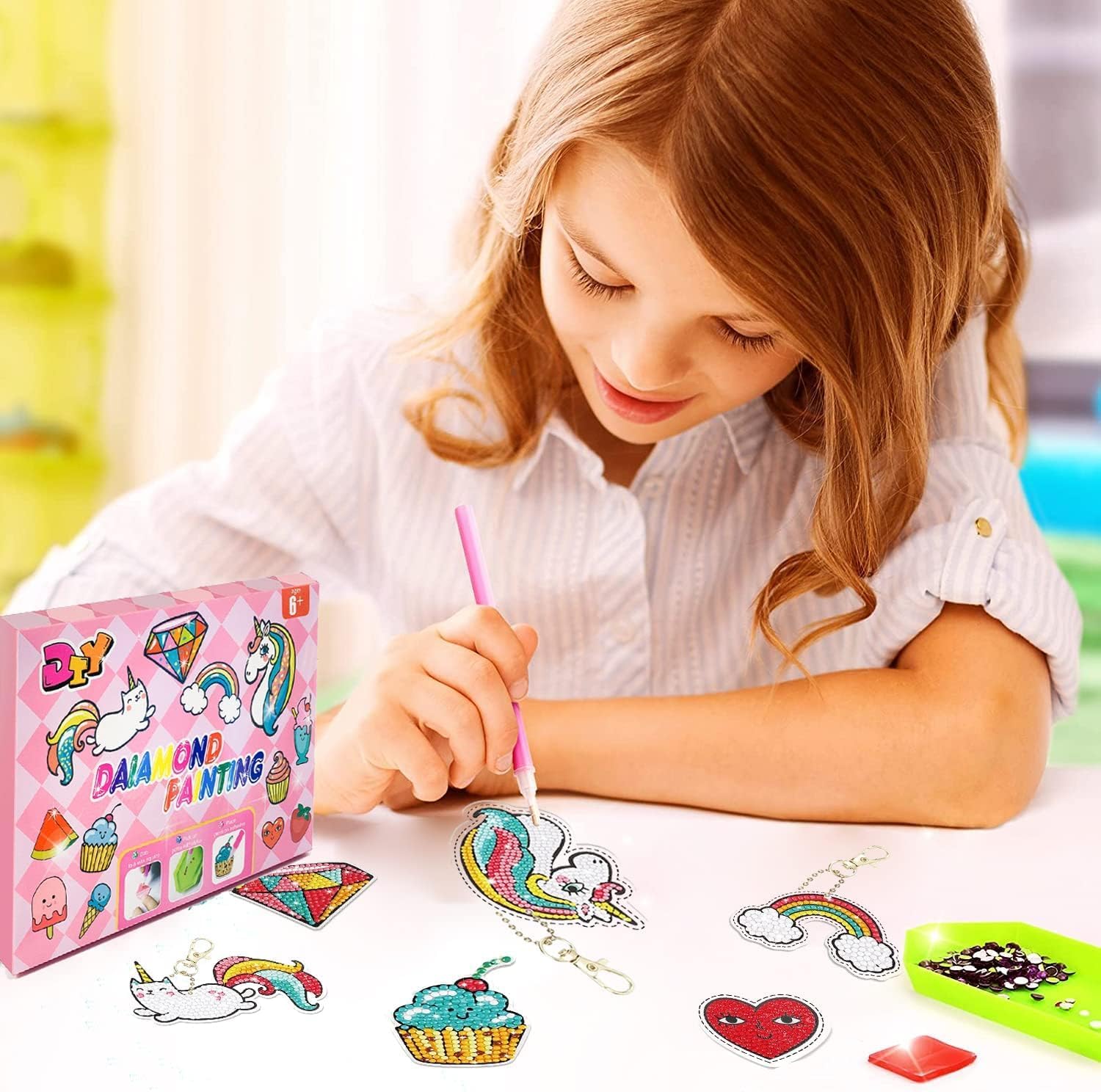 Kit de Bricolage pour Enfant: Les enfants n’ont qu’à fixer les diamants aux endroits correspondants. Déchirer le film sur la surface, coller l’adhésif sur le stylo de diamant, coller le diamant dans la bonne position avec le stylo de diamant, peut améliorer les compétences pratiques et de coordination des enfants.