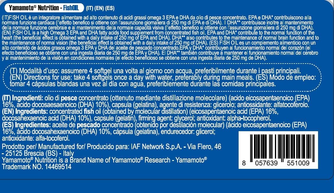 YAMAMOTO Nutrition Fish Oil : Avis complet sur l’Huile de Poisson Distillée, Oméga 3 EPA et DHA, 200 Softgels, Sans Gluten ni Lactose