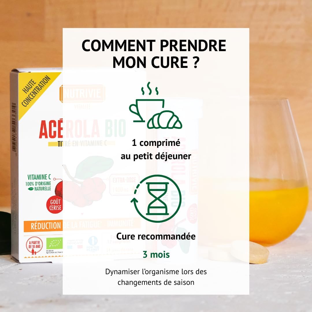 Acérola Bio 1400 mg : Avis et test complet sur la Vitamine C Naturelle pour Fatigue et Immunité – 24 Comprimés Cerise Fabriqués en France