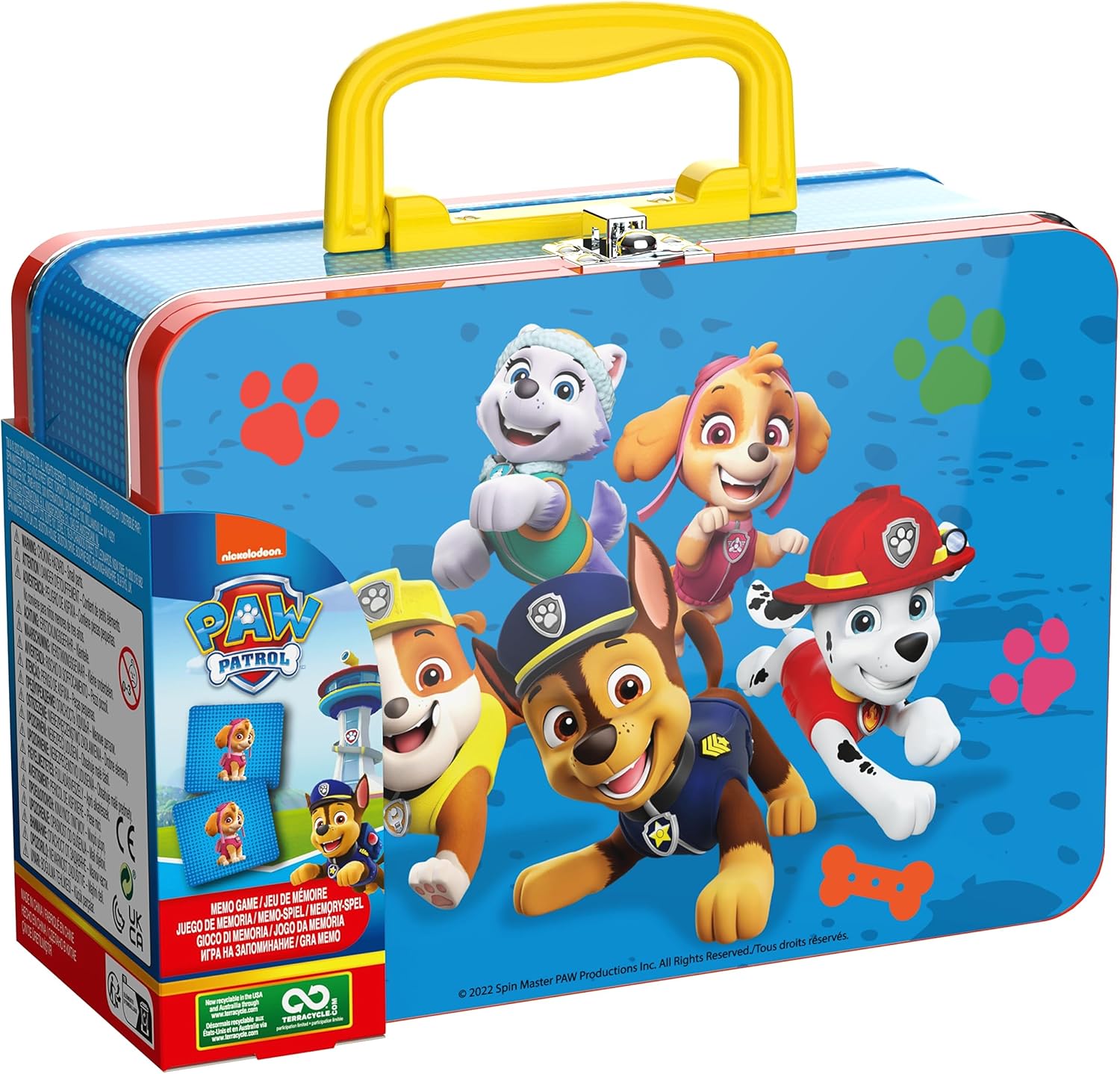 MEMO VALISETTE 72 CARTES – Un mémo avec 72 cartes à l’effigie des personnages de la série TV La Pat’ Patrouille conditionné dans une adorable mini-valisette métallique, qui donnera envie aux enfants d’y ranger aussi leurs trésors