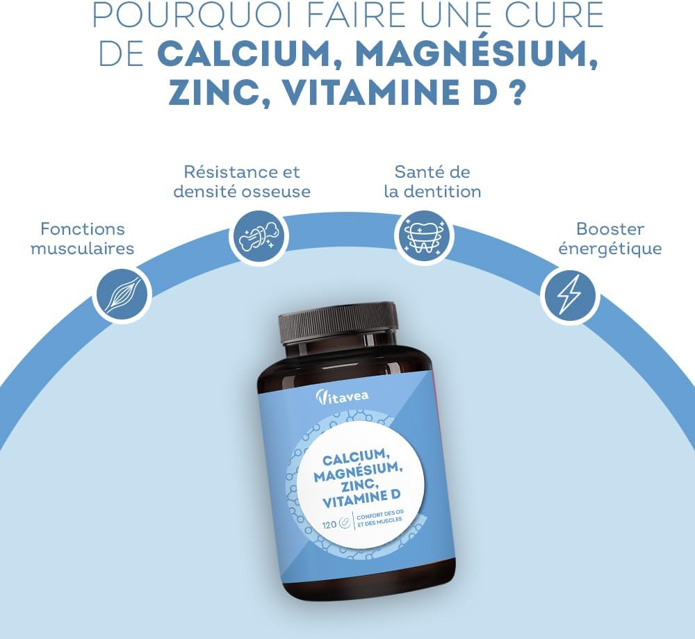 Calcium, Magnésium, Zinc, Vitamine D3 : Avis et Guide d’Achat sur le Complexe Santé Osseuse et Énergie – 120 Comprimés Fabriqués en France
