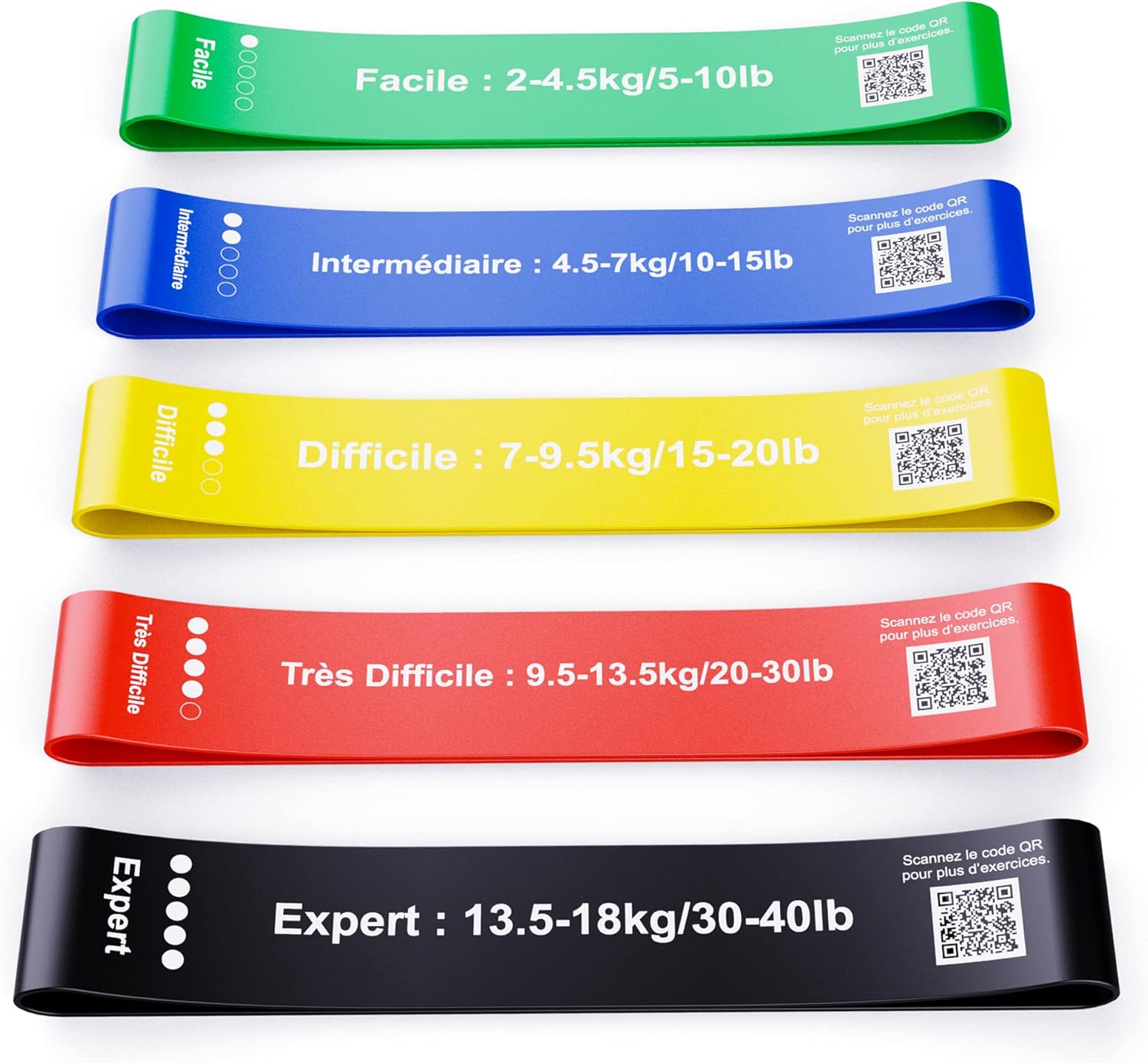 - Facilité d’utilisation : Les exercices sont imprimés en français sur chaque bande. C’est un petit détail, mais croyez-moi, cela fait toute la différence quand vous débutez !