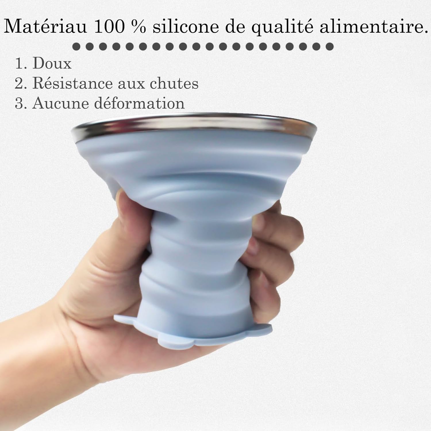 Fabriqué en silicone de qualité alimentaire, ce gobelet est non seulement souple et durable, mais il est aussi sans odeur et sans taches. J’ai été agréablement surpris par sa facilité de nettoyage. Un simple lavage à l’eau et au savon suffit, et il est prêt à l’emploi. Les bords en acier inoxydable ajoutent une touche de robustesse, tandis que le couvercle en plastique assure une étanchéité parfaite. Fini les fuites dans votre sac !
