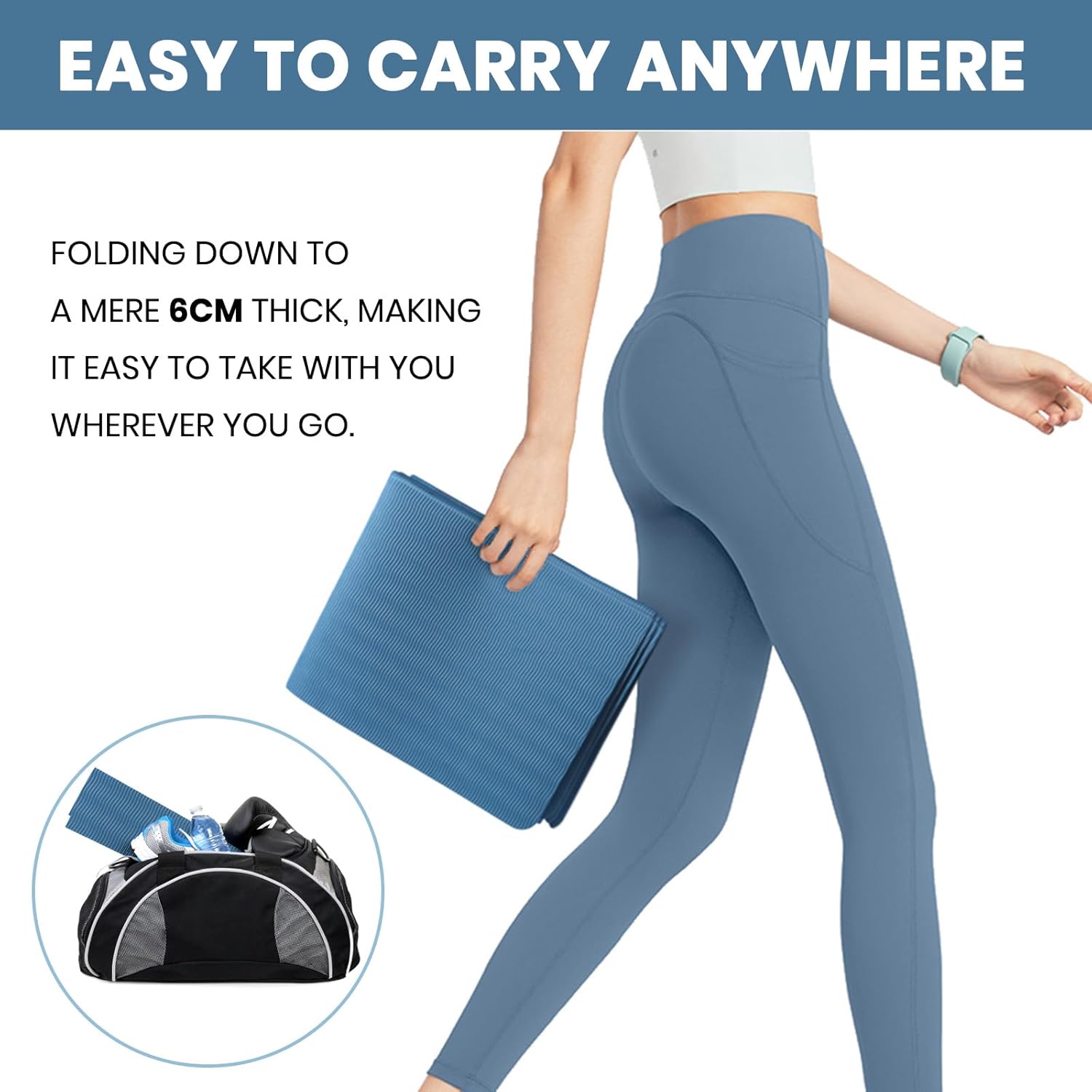 Dès le premier coup d’œil, ce tapis se distingue par sa capacité à se plier en trois parties. Une fois plié, il ne mesure que 37 x 30 x 6 cm, ce qui le rend extrêmement facile à transporter. Que ce soit pour une séance de yoga au parc, un entraînement au bureau ou même un week-end à la plage, je peux l’emporter partout sans encombrement. Mon conseil : glissez-le dans votre sac de sport, vous ne le regretterez pas !