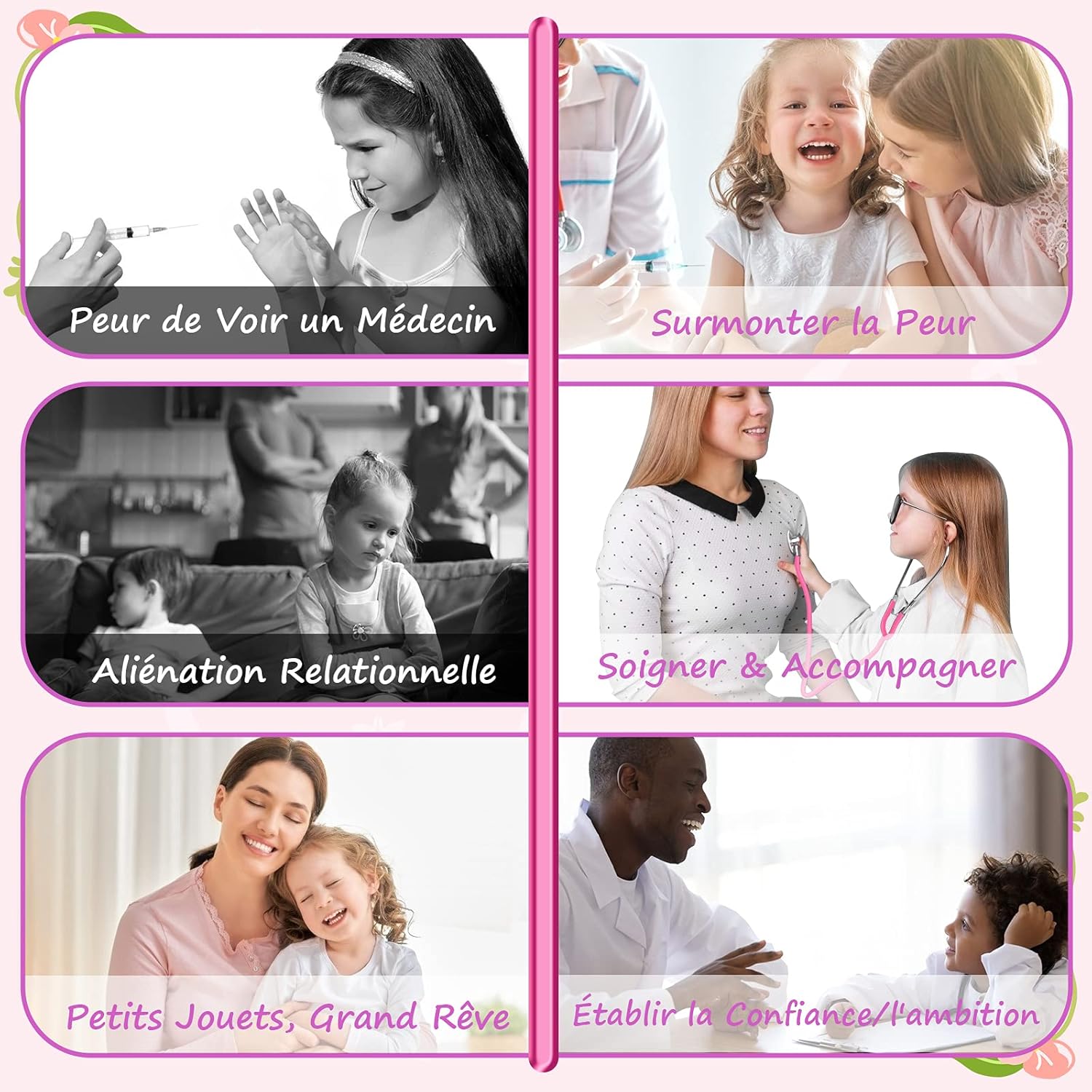 Les clients sont satisfaits de la qualité, des accessoires et de l’apparence de la mallette de jeu de médecin. Ils apprécient le tissu doux et la bonne finition. Les clients mentionnent que le produit est amusant pour les enfants, parfait pour développer leur imagination. Ils trouvent la mallette jolie, bien pensée et réaliste. De plus, ils sont également satisfaits du rapport qualité-prix et de la fonctionnalité.
