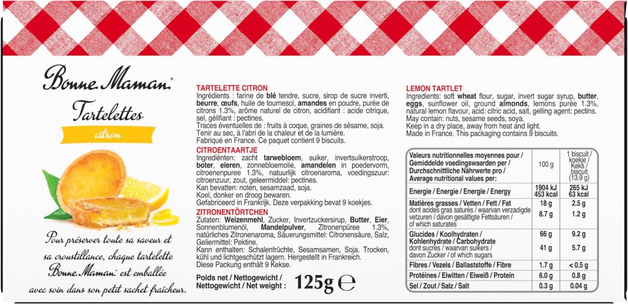 Les clients apprécient le goût des tartelettes, les décrivant comme savoureuses, délicieuses et avec une crème citronnée. Ils sont satisfaits de la qualité et de la texture croustillante de la pâte sablée. De plus, ils trouvent le prix abordable et apprécient l’acidité, qui n’est pas trop sucrée. Les clients mentionnent également que le produit est parfumé.