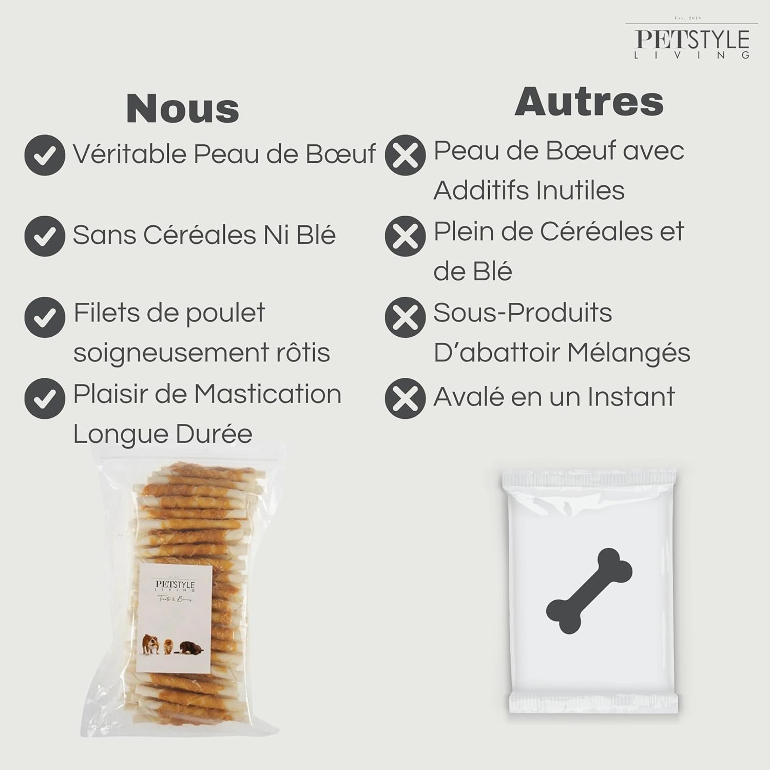 Les clients sont satisfaits de la qualité des bâtonnets. Ils les décrivent comme appétissants, savoureux et avec une texture parfaite à croquer. Ils apprécient également le bon rapport qualité-prix et le trouvent pas cher par rapport aux magasins. Les clients mentionnent que les chiens en raffolent et apprécient l’odeur. Cependant, certains sont mécontents de la quantité et ont des avis partagés sur la taille.