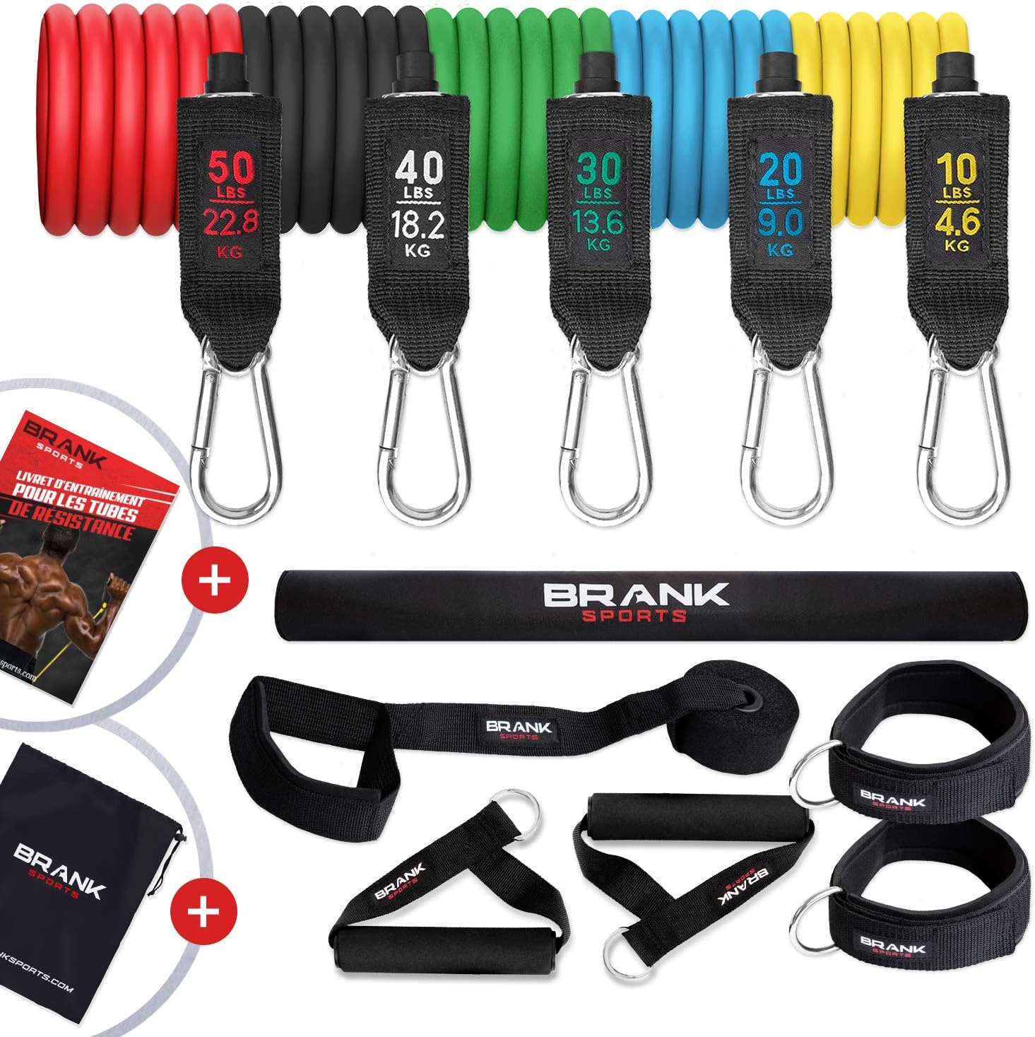 Le kit de tubes de résistance BRANK Sports est un ensemble complet qui se compose de 13 pièces, vous permettant de réaliser une multitude d’exercices. Voici un aperçu des principales caractéristiques :