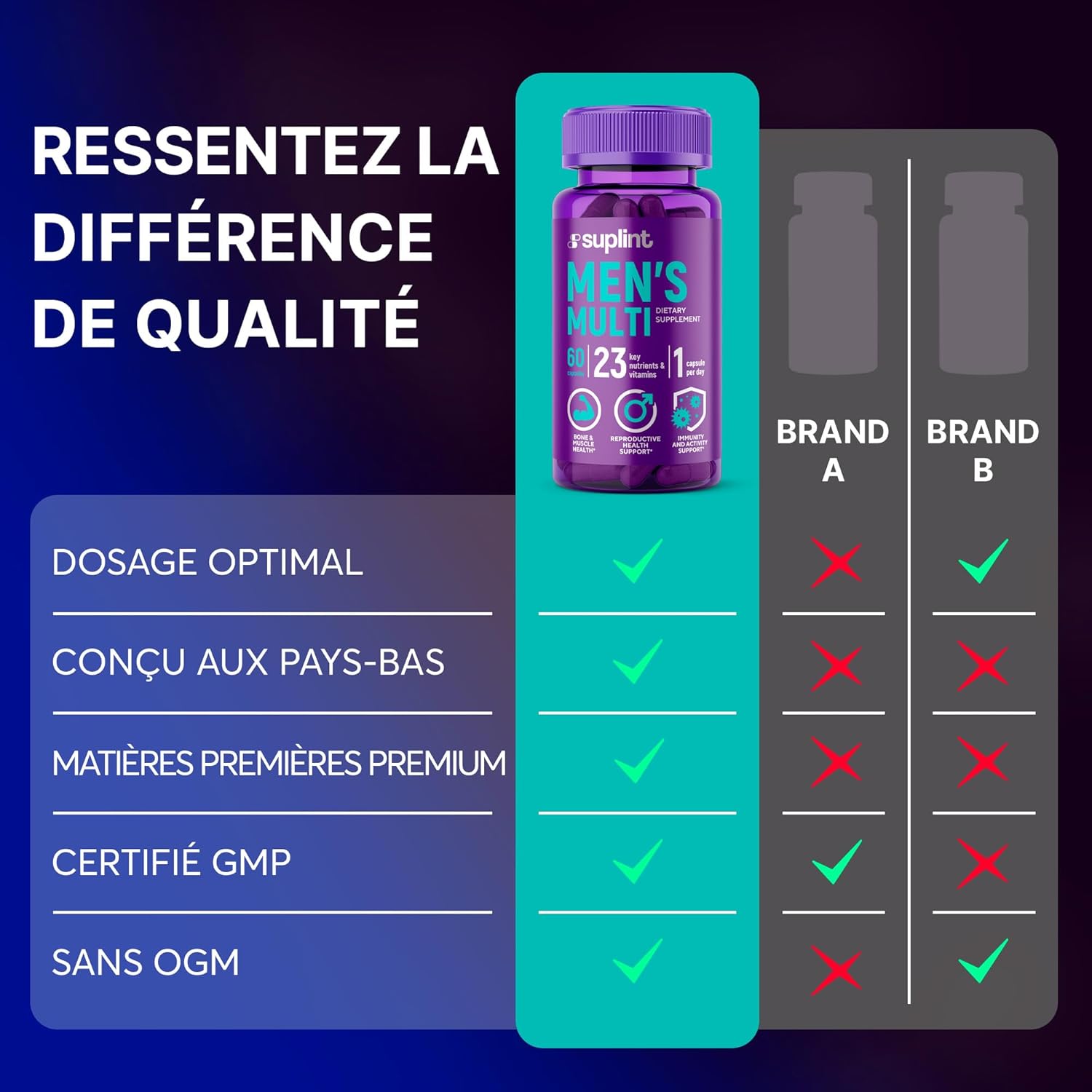 Les Multivitamines Homme de SUPLINT contiennent :