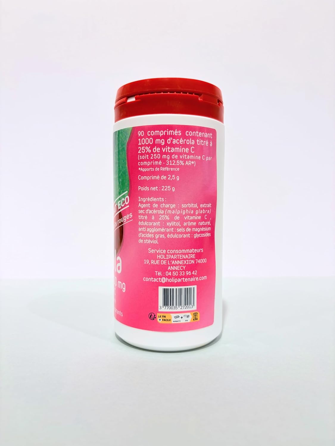 L’une des raisons qui m’ont poussé à choisir ce produit est sa composition. Chaque comprimé contient un extrait d’acérola titré à 25 %, ce qui garantit un apport optimal en vitamine C naturelle. Pour moi, cela signifie que je ne me contente pas d’une simple supplémentation chimique, mais que je fais le plein de nutriments directement issus de la nature.
