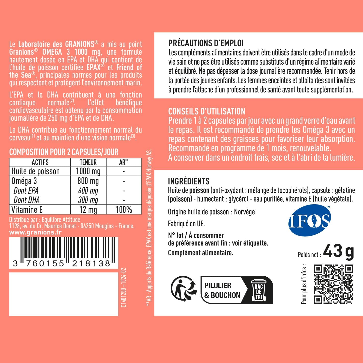 OMEGA 3 1000 mg GRANIONS : Avis complet sur l’huile de poisson sauvage EPAX, haute concentration DHA EPA, avec vitamine E, sans OGM et certifiée Friend of the Sea – Test et guide d’achat.