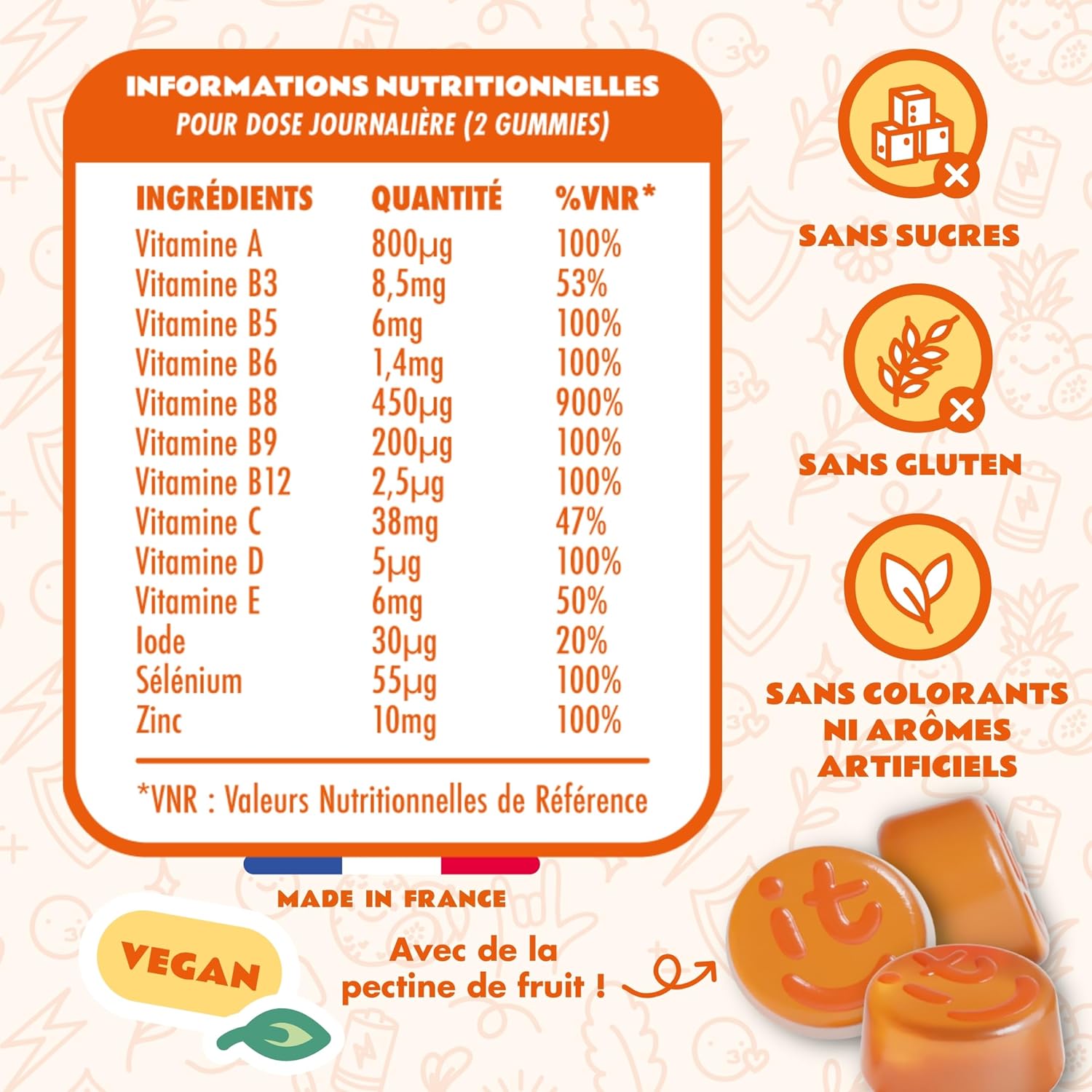 En plus d’apporter de l’énergie, ces gummies sont également enrichis en vitamine C, vitamine D, zinc et sélénium. Ces éléments sont cruciaux pour renforcer nos défenses naturelles et nous protéger contre les agressions extérieures. J’ai tendance à attraper des rhumes facilement, mais depuis que j’ai intégré ces gummies dans ma routine, je me sens plus résistant aux petits maux de l’hiver. Spoiler alert : mon fils, qui est souvent malade à l’école, a également commencé à les prendre et il semble moins souvent malade.