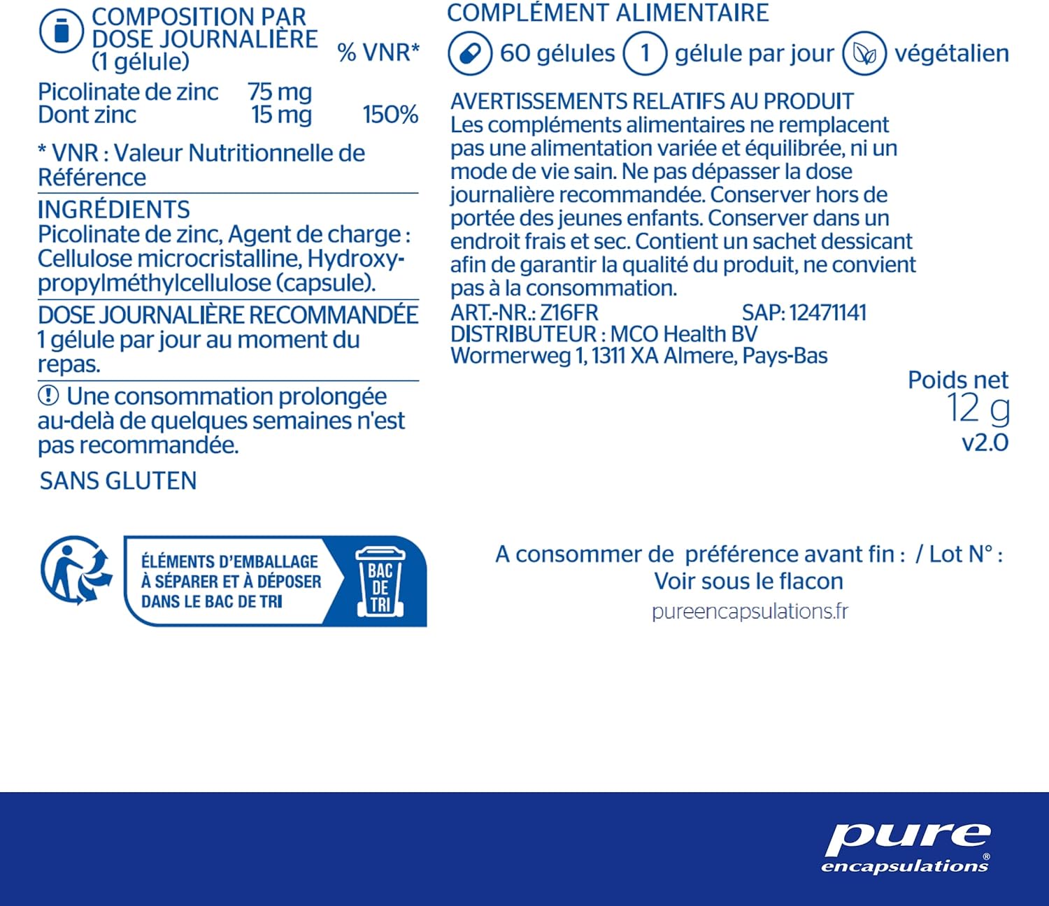 Pourquoi avoir choisi le Zinc 15 de Pure Encapsulations ?