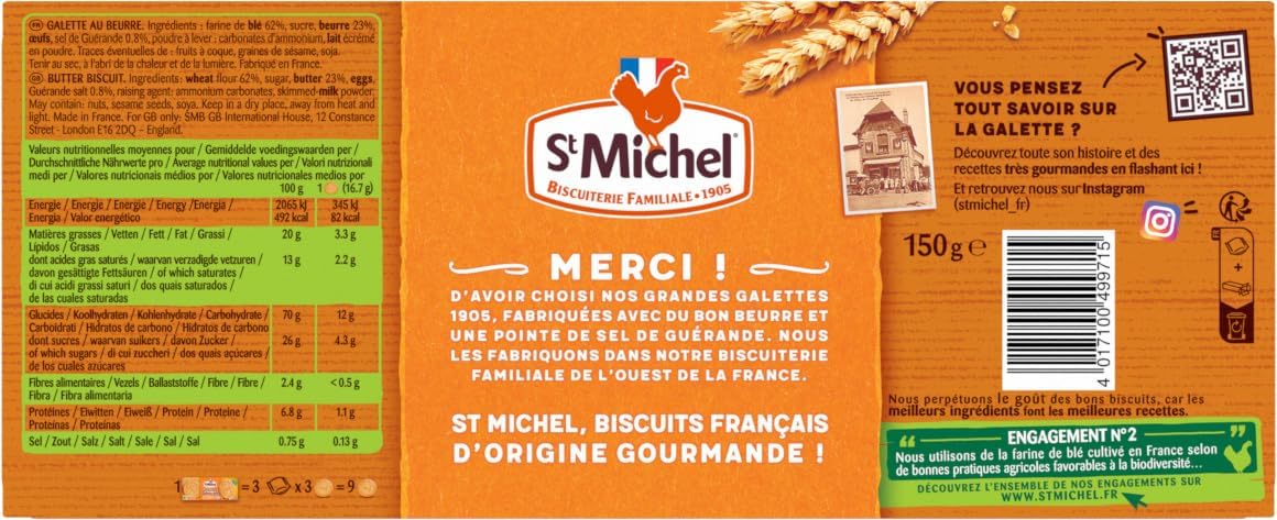En somme, les Grandes Galettes 1905 de St-Michel sont un véritable délice. Leur recette simple et authentique, combinée à des ingrédients de qualité, en fait un choix idéal pour les amateurs de biscuits. Que ce soit pour une pause gourmande ou pour partager un moment convivial, ces galettes sont toujours une excellente option. Alors, n’attendez plus pour les découvrir et laissez-vous séduire par leur goût irrésistible !