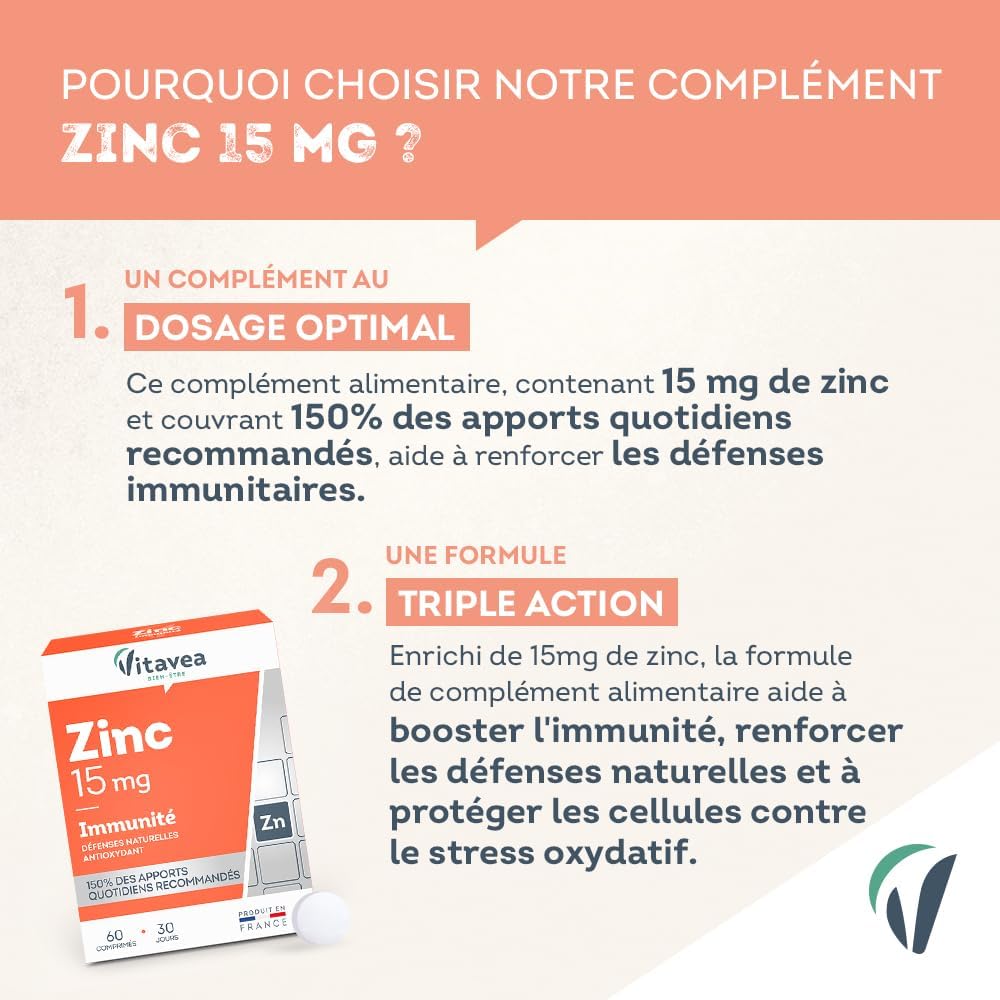 En d’autres termes, un apport suffisant en zinc est crucial pour maintenir notre santé. En introduisant Vitavea Zinc dans votre routine quotidienne, vous pourriez donc donner un coup de pouce significatif à votre organisme.
